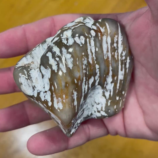 From the shores of the Carolinas to your alter, home or office. This piece is free-form polished to show off the elements of the Agate, but not too polished to erase the elements of the original coral shape.